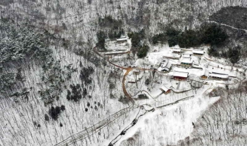 16일 전남 함평군 해보면 용천사에 눈이 쌓여 한 폭의 수묵화를 연상하게 한다. 현재 함평군 적설량은 3.1㎝이다.