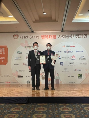 사천시시설관리공단(이사장 박태정)은 오늘 23일 오전 11시, 서울 롯데호텔 사파이어볼룸에서 진행된 ‘제12회 행복더함 사회공헌 캠페인’ 시상식에서 환경사랑공헌 부문 환경부 장관상을 수상했다.