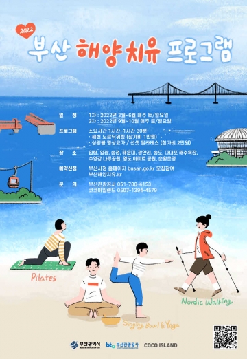 부산시(시장 박형준)는 오는 19일 수영강을 시작으로 부산의 대표적인 해양관광콘텐츠인 2022 해양치유 프로그램을 확대 운영한다고 밝혔다.