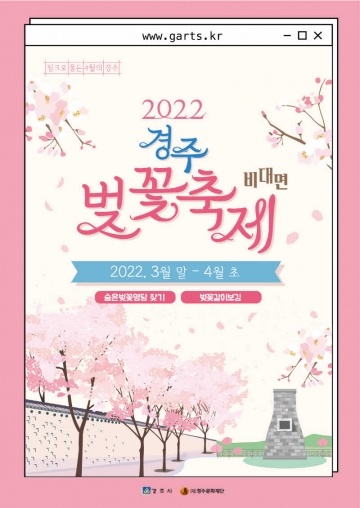 지역 대표 봄 축제인 벚꽃축제가 벚꽃이 피기 시작하는 이달 말부터 다음달 초까지 비대면으로 열린다고 13일 경주시가 밝혔다.