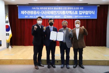 제주관광공사(사장 고은숙)와 ㈔국제전기자동차엑스포(이사장 김대환)는 16일 제주웰컴센터에서 ‘지속 가능한 제주관광 발전과 필(必)환경 산업 생태계 조성’을 위한 업무협약식을 개최했다.