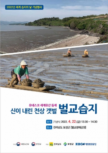 해양수산부가 주최하고 보성군이 주관하는 2022년 세계 습지의 날 기념행사가 오는 4월 22일 벌교생태공원에서 개최된다.