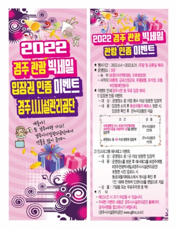 김기열 시설관리공단 이사장은 “이벤트를 통해 관광객들이 경주 여행의 즐거움을 누리고 지역경제를 활성화하는 데 도움이 되길 바란다”고 말했다.