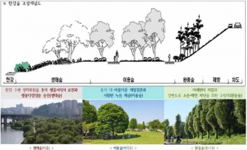한강숲은 자연성 회복에 방점을 둔 ‘생태숲’, 나무 그늘을 만들어 시민의 쉼터가 되어주는 ‘이용숲’, 미세먼지와 소음․매연을 차단해 주는 ‘완충숲 등 식재 위치와 기능을 고려해 조성된다.