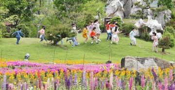 제24회 함평나비대축제 개막을 하루 앞둔 28일 오전, 축제가 열리는 함평엑스포공원 중앙광장에 아이들이 모여 ‘나비날리기’를 체험을 하고 있다.