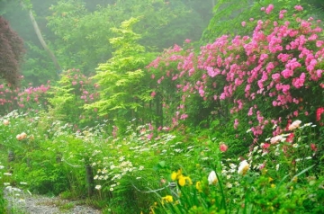 5월의 죽화경은 대나무기둥에 기대어 넝쿨장미가 피어나고, 샤스타데이지를 비롯한 다양한 야생화와 화목이 15,000㎡ 규모의 정원에 아름다운 풍경을 수놓는다.