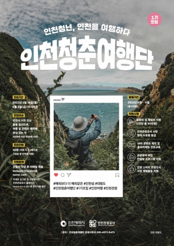 인천관광공사(사장 민민홍)는 지역 청년들이 주체가 되어 인천의 ‘숨은 매력적인 관광지’를 발굴하고 콘텐츠를 제작 및 확산하는 ‘2022 인천청춘여행단’을 5월 16일부터 6월 3일까지 모집한다.