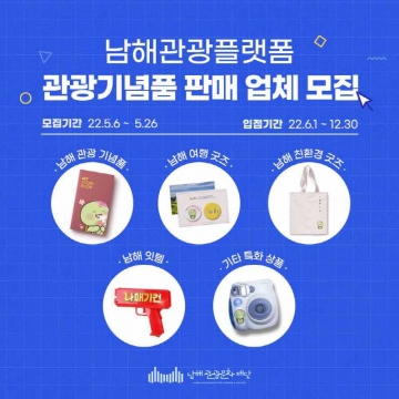 남해관광문화재단이 남해각에서 전시·판매될 남해군 관광 기념품(입점 업체)을 모집한다.
