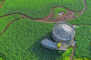 회산백련지의 심벌마크인 수상유리온실을 리모델링해 1층에 백련카페가 들어섰고, 드넓은 백련지를 조망할 수 있도록 2층을 식물원 쉼터로 조성해 관광객을 맞이하고 있다.