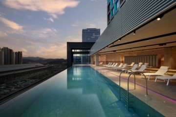 인피니티풀은 개폐형 지붕 구조로 탁 트윈 도시 전경과 시원한 자연광을 느낄 수 있다. 밤이 되면 광명 시내의 야경과 수영장 주변의 감각적인 조명들이 어우러져 프라이빗하고 감성적인 분위기를 더해 인증샷을 남기기에 알맞다.