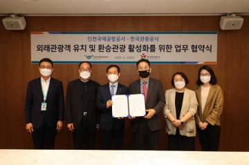 인천국제공항공사(사장 김경욱)는 지난 25일 포스트 코로나 시대 항공‧관광수요의 신속한 회복을 위해 한국관광공사와‘외래 관광객 유치 및 환승관광 활성화를 위한 업무협약’을 체결했다고 26일 밝혔다.