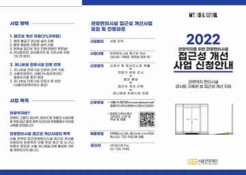 장애인, 고령자, 영유아 및 동반자 등 관광약자를 포함한 누구나 편리하게 서울을 여행할 수 있도록 2018년부터 관광편의시설 접근성 개선사업을 시행해 오고 있다.