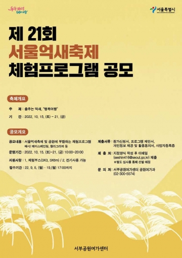 서울시는 10월 15일부터 21일까지 진행하는 제21회 서울억새축제를 더 풍성하게 만들어줄 체험 프로그램 참여자를 모집한다.