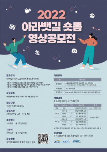 K-water 아라뱃길지사(지사장 김정경)와 수자원환경산업진흥(사장 조중희)은 ‘2022년 아라뱃길 숏폼 영상 공모전’ 작품을 공모한다고 8일 밝혔다.