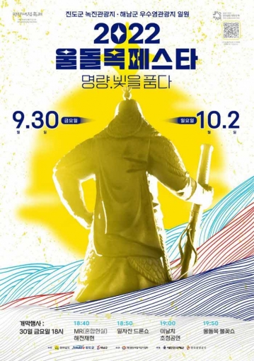 2022 명량대첩축제가 오는 30일(금)부터 10월 2일(일)까지 3일간 진도군 군내면 녹진관광지 일원과 진도대교 등에서 개최된다.
