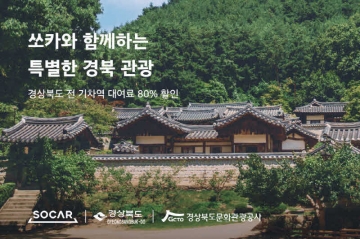 경상북도와 경상북도문화관광공사(사장 김성조, 이하 공사)는 ㈜쏘카와 공동으로 경상북도 내 철도역 인근 공유차량 대여요금을 할인하는 이벤트를 진행한다고 27일 밝혔다.