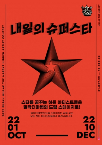 10월 1일 토요일 부산 광안리에 있는 복합문화공간 밀락더마켓에서 키친보리에 주최, 한국문화예술협동조합 주관으로 꿈의 무대를 펼칠 수 있는 히든 아티스트 경연 대회 ‘내일의 슈퍼스타’가 개최된다.