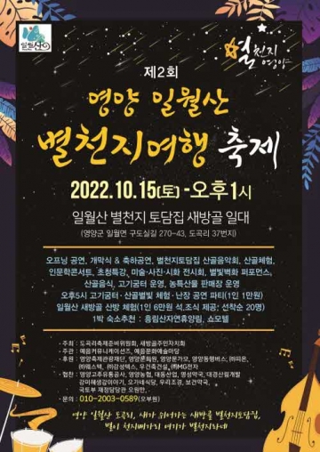 '제2회 영양군 일월산 별천지여행 축제'는 2022년 10월 15일(토) 일월산 별천지토담집 야외무대와 새방골 일대에서 열린다. 영양축제관광재단, 영양문화원, 영양문가모, 영양동행버스, ㈜피온에서, ㈜MG전자에서 후원했다.