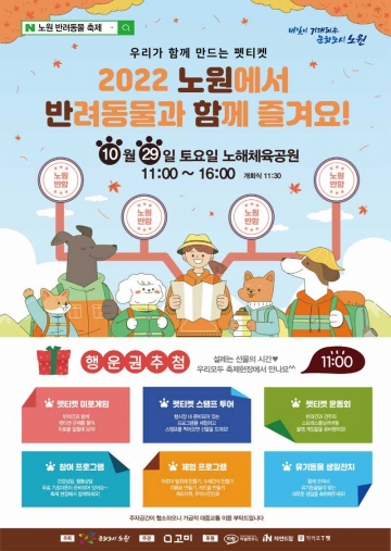 서울 노원구(구청장 오승록)가 성숙한 반려문화 조성을 위해 반려동물과 함께 즐기는 <2022 반려동물 문화축제>를 개최한다고 밝혔다.