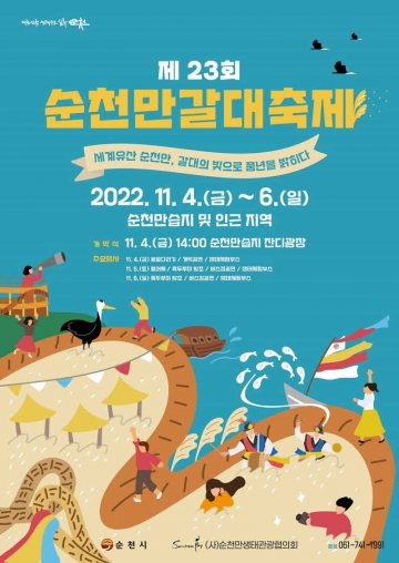 순천시(시장 노관규)는 내달 4일부터 6일까지 3일간 순천만습지와 순천만 인근지역 일원에서 ‘제23회 순천만 갈대축제’를 개최한다.