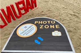 해운대해수욕장 관광안내소 앞 백사장의 포토존에서 휴대폰으로 QR코드를 스캔해 이용할 수 있다.
