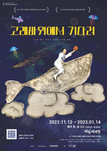 11월 12일부터 1월 14일까지 하땅세 극장에서 공연되는 고래바위에서 기다려는 만 36개월 이상 관람 연령 가로 코로나19에 지친 가족 관객에게 환상적 영상의 세계로 안내한다.