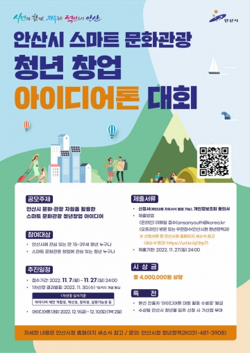 이혜숙 청년정책과장은 “안산의 문화관광 자원을 활용해 혁신적인 창업 아이디어를 갖춘 예비‧초기 창업자를 발굴할 수 있도록 많은 관심과 참여를 당부드린다”고 말했다.