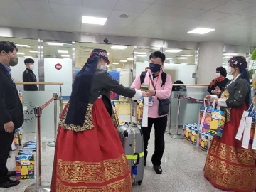 제주특별자치도와 제주관광공사(사장 고은숙)는 25일 제주국제공항 국제선 입국장에서 타이베이-제주 복항 기념 환영행사를 진행했다.