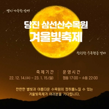 당진시가 12월 14일부터 내년 1월 15일까지 30일간 겨울밤의 정취를 느낄 수 있는‘2022 삼선산수목원 겨울빛축제’를 개최한다.