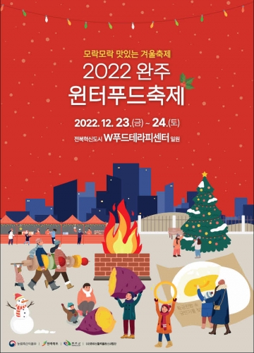 겨울 먹거리를 한자리에서 마음껏 즐길 수 있는 ‘2022 완주 윈터푸드(Winter Food)축제’가 오는 23일과 24(토)일 양일 간 ‘모락모락 맛있는 겨울축제로 힐링UP’이란 주제로 전북혁신도시 W푸드테라피센터 일원에서 개최된다.