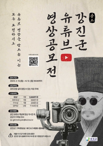 심사 결과는 6월 26일에 발표되며, 수상 작품은 강진군 공식 유튜브 채널 “찐TV”와 SNS 채널 등에서 강진군 홍보에 활용될 예정이다.