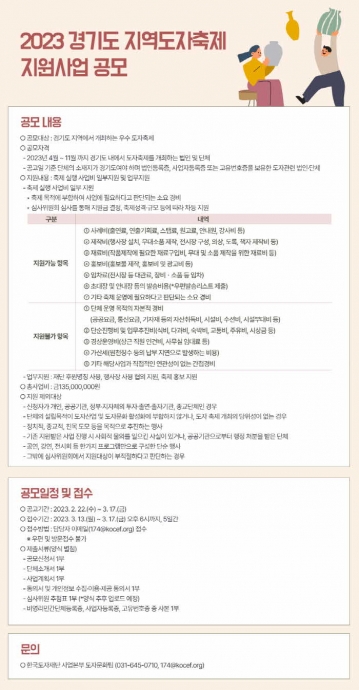 신청 관련 자세한 내용은 한국도자재단 누리집(www.kocef.org)에서 확인할 수 있으며, 기타 문의 사항은 한국도자재단 도자문화팀(031-645-0710)으로 전화하면 안내받을 수 있다.