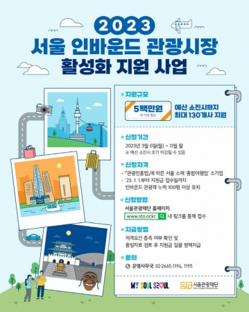 서울시가 코로나19 엔데믹을 맞아 국제관광 재개에 대비하는 인바운드(외국인의 국내여행) 여행사를 대상으로 고용지원금을 지급한다고 밝혔다. 지원금은 서울 소재 종합여행업 소기업 최대 130개 사를 대상으로 각 500만 원씩 총 7억여 원 규모다.