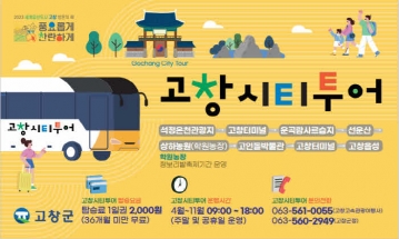 고창군 관계자는 “2023 세계유산도시 고창 방문의 해를 맞아 편리하게 고창을 찾는 여행객들 위해 고창 시티투어 버스 운영에 만전을 기하겠다”며 “고창의 다채로운 행사, 축제와 관광지를 홍보해 더 많은 여행객이 고창을 찾을 수 있도록 노력하겠다”고 전했다.