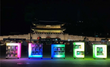 ‘광화문’, ‘책마당’, ‘매력’, ‘서울’, ‘도서관’을 구성하는 36개의 한글 자모 서가는 낮에는 알록달록한 색상으로 감성적인 분위기를 연출하고, 밤에는 조명을 켜 빛이 들어오는 형태로 제작되었다.