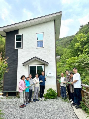 제막식에는 호텔 참여 네 가정을 비롯한 이상윤 이장과 마을운영위원 및 놀루와 임직원 등 15명이 참석했다.