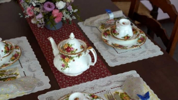 ‘영국관’은 로맨틱한 티하우스와 영국의 국화인 장미꽃 포토존을 조성하여, 내부에서는 화려한 티팟세트에 영국의 대표차인 밀크티와 애프터눈 티를 체험할 수 있으며 홍차 제품 전시도 볼 수 있게 조성돼있다.