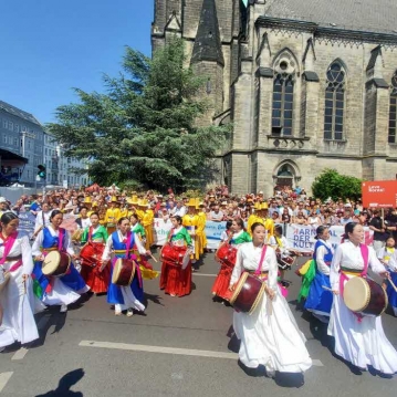나발과 태평소가 행진대를 이끌고 북과 장구, 꽹과리가 그 뒤를 따랐으며 황금빛 의상과 시원하면서도 오묘한 태평소 소리가 관람객들의 눈과 귀를 동시에 휘감았다. 이어 베를린에 거주하고 있는 한인 3세들과 주재원 2세들이 장단에 맞추어 부채춤을 추면서 뒤를 이었는데 이는 굉장한 장관을 연출하여 축제에 참가한 세계 모든 관람객들에게 찬사를 받기도 했다. 행사에 참석한 카이 베그너 베를린 시장도 한국 공연팀에 큰 박수를 보내며 한국문화에 대한 관심을 표현했다는 후문이다.