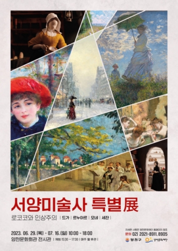 양천문화재단(이사장 천동희)은 6월 29일부터 7월 16일까지 양천문화회관 전시관에서 2023 양천문화재단 기획전시 ‘서양미술사 특별전 - 로코코와 인상주의 展’을 개최한다.