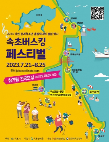 (사)강원민예총 속초지부(박용민 회장)는 2024 강원 동계청소년올림픽의 붐업 조성을 위해 추진하는 전국단위 버스킹 경연대회 ‘속초 버스킹 축제’ 참가자 모집을 8월 25일(금)까지 진행한다.
