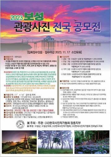 공모전 대상은 2023년 보성을 대표할 수 있는 관광지, 축제, 문화 및 예술제, 체육행사, 생활상 등 관광자원을 소재로 촬영한 사진 작품이다.