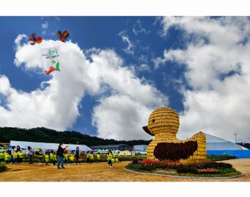 사진의 소재인 오리와 함께는 2022괴산세계유기농산업엑스포 기간에 옥수수와 수수로 만든 4m가량의 오리잡곡탑으로 행사장 메인포토존으로 사랑받았던 상징물이다.