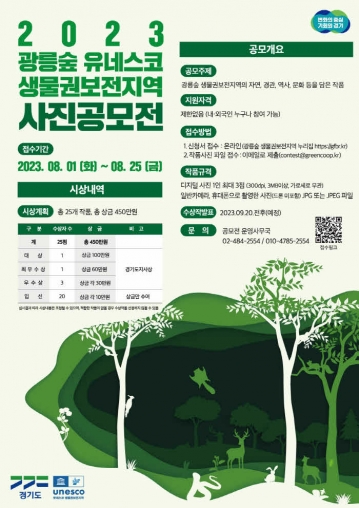 경기도가 광릉숲 유네스코 생물권보전지역의 가치를 널리 알리기 위해 ‘2023 광릉숲 생물권보전지역 공모전’을 개최한다.