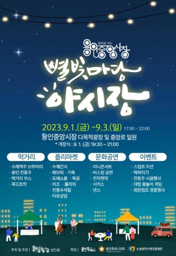 용인중앙시장 별빛마당 야시장은 용인중앙시장상인회가 주최·주관하고 용인특례시가 후원한다.