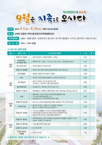 남해군은 9월 한 달 간 매주 토요일 지족어촌관광단지에서 ‘직거래장터&버스킹’을 개최한다.