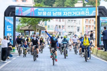 남해군의 그림 같은 해안도로를 자전거로 달렸던 '제5회 보물섬 남해 자전거대축전'이 지난 3일 오전 노량 충렬사에서 열렸다.