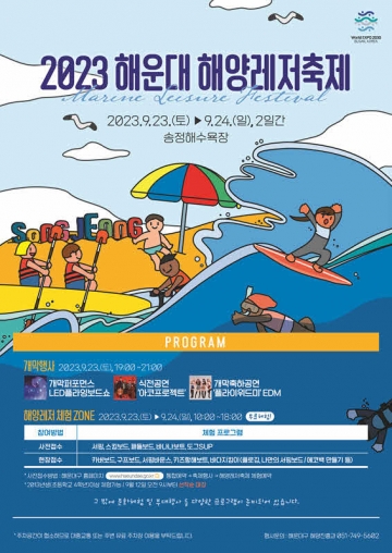 해운대구(구청장 김성수)는 23~24일 대한민국 서핑 메카 송정해수욕장에서 ‘2023년 해운대 해양레저축제’를 개최한다.