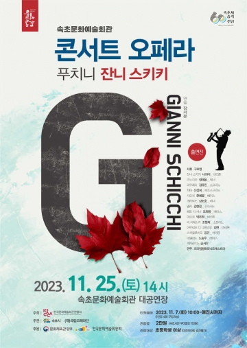 속초시 승격 60주년 기념 및 2023년 방방곡곡 문화공감 사업으로 깊은 가을 예술과 음악의 화려한 만남이 펼쳐진다.
