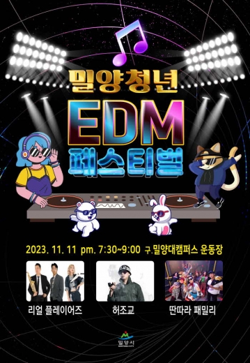 밀양시는 오는 11일 오후 7시 30분부터 9시까지 구 밀양대 캠퍼스 운동장 특설무대에서 밀양청년 EDM 페스티벌을 개최한다.