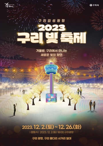 구리시(시장 백경현)는 오는 12월 2일 점등식을 시작으로 12월 26일까지 구리광장 및 돌다리사거리 일대에서 ‘2023 제1회 구리 빛 축제’를 개최한다.